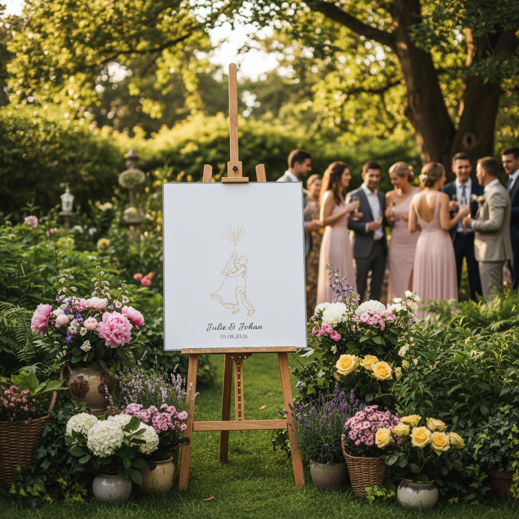 - Tilpass skiltet med brudeparets navn og dato: